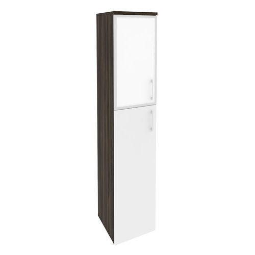 Шкаф высокий узкий левый (стекло белое) O.SU-1.7R(L) white Дуб Мали/Белый Бриллиант