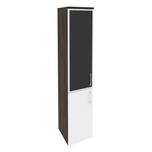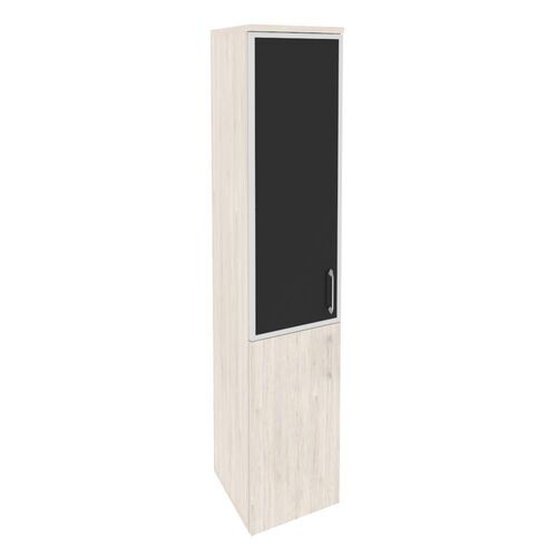 Шкаф высокий узкий левый (стекло черное) O.SU-1.2R(L) black Денвер Светлый