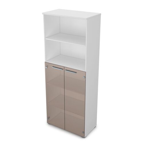 Шкаф высокий со стеклом и открытыми полками 9ШД.005.21 Белый премиум
