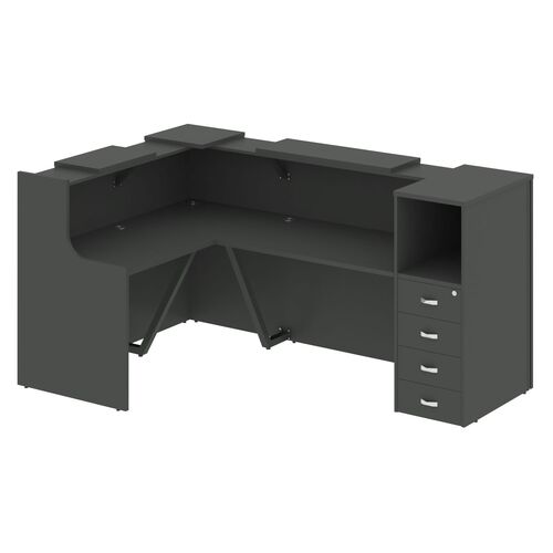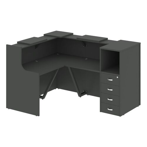 Стойка ресепшен угловая левая (полки высокие) А4 9872 А4 9872 АР/АР/АР Антрацит премиум