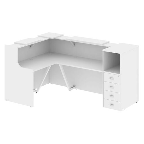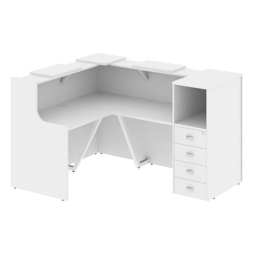 Стойка ресепшен угловая левая (полки высокие) А4 9872 А4 9872 БП/БП/БП Белый премиум
