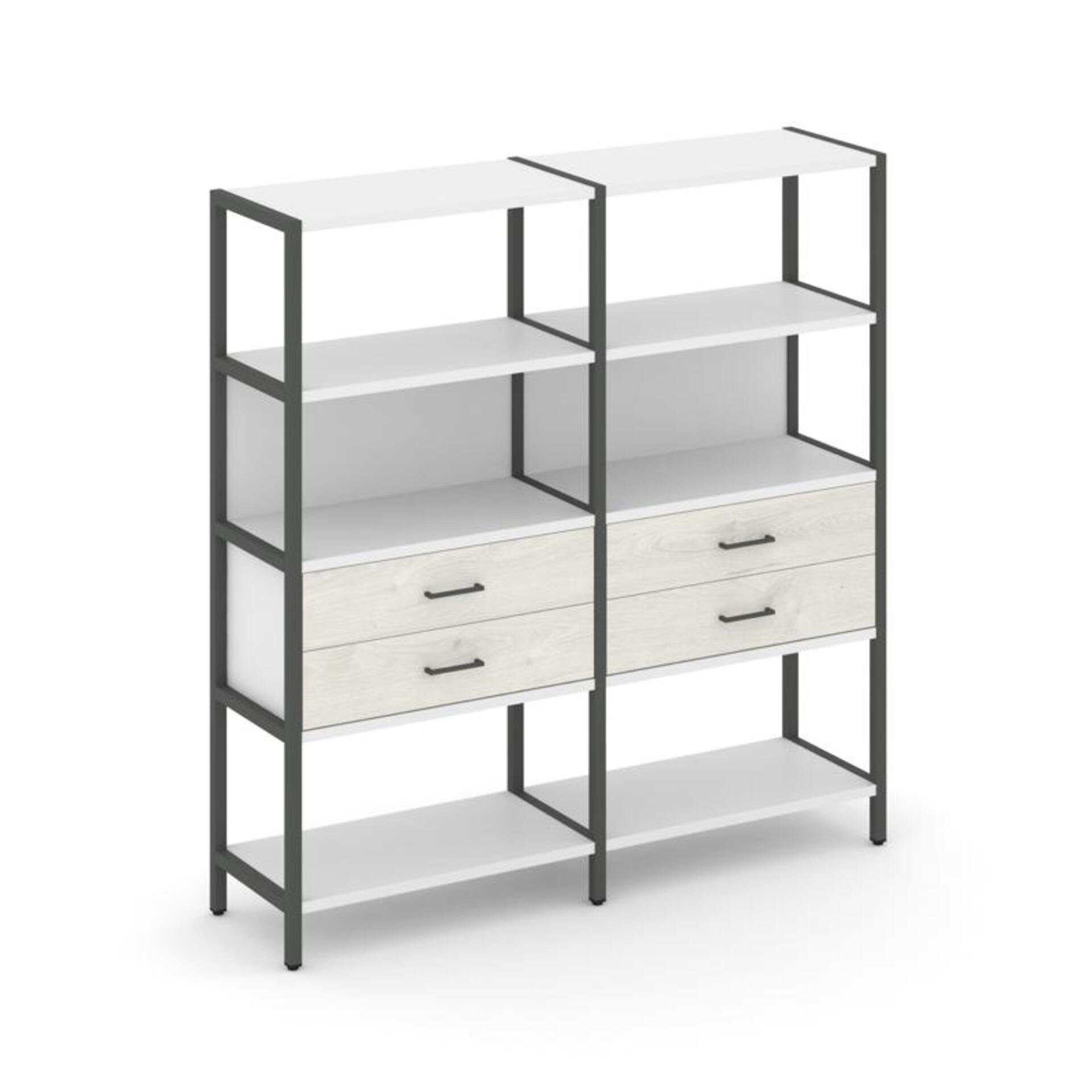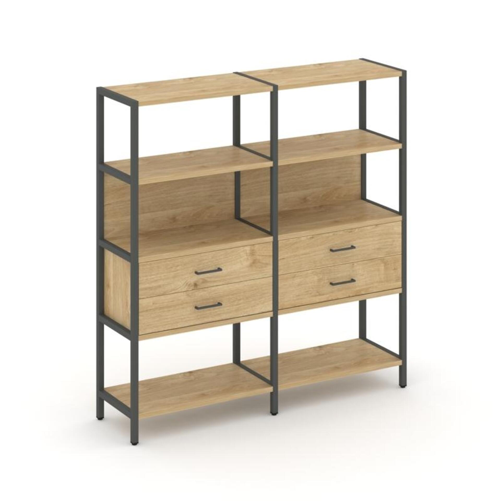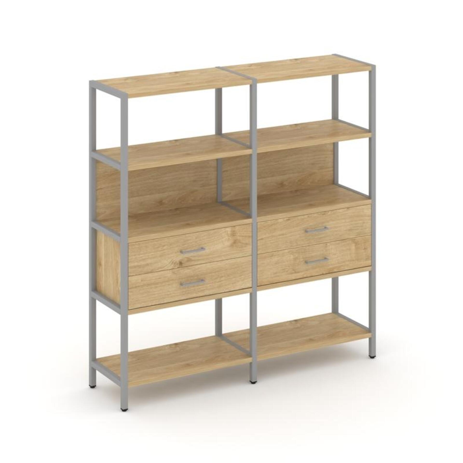 Двухсекционный стеллаж четырехярусный с ящиками SN.STM-422