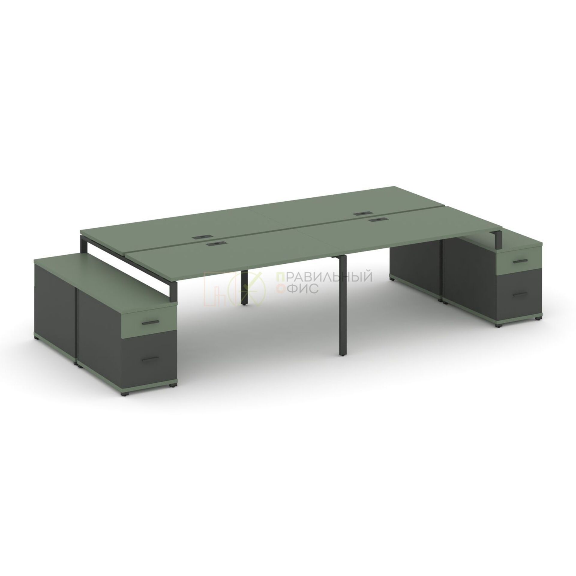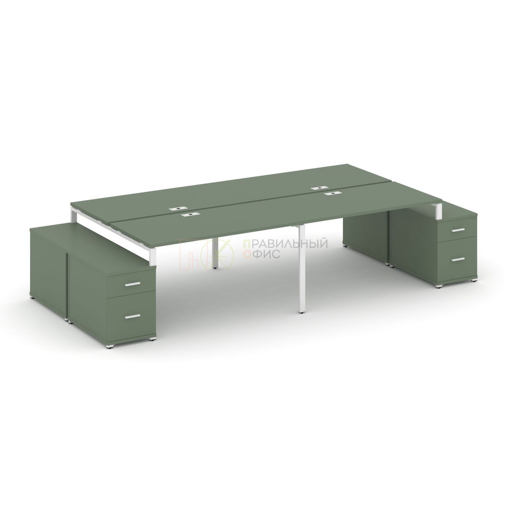 Рабочая станция на 4 места с двумя двухсторонними опорными тумбами CN.DRS-330 A/B/W