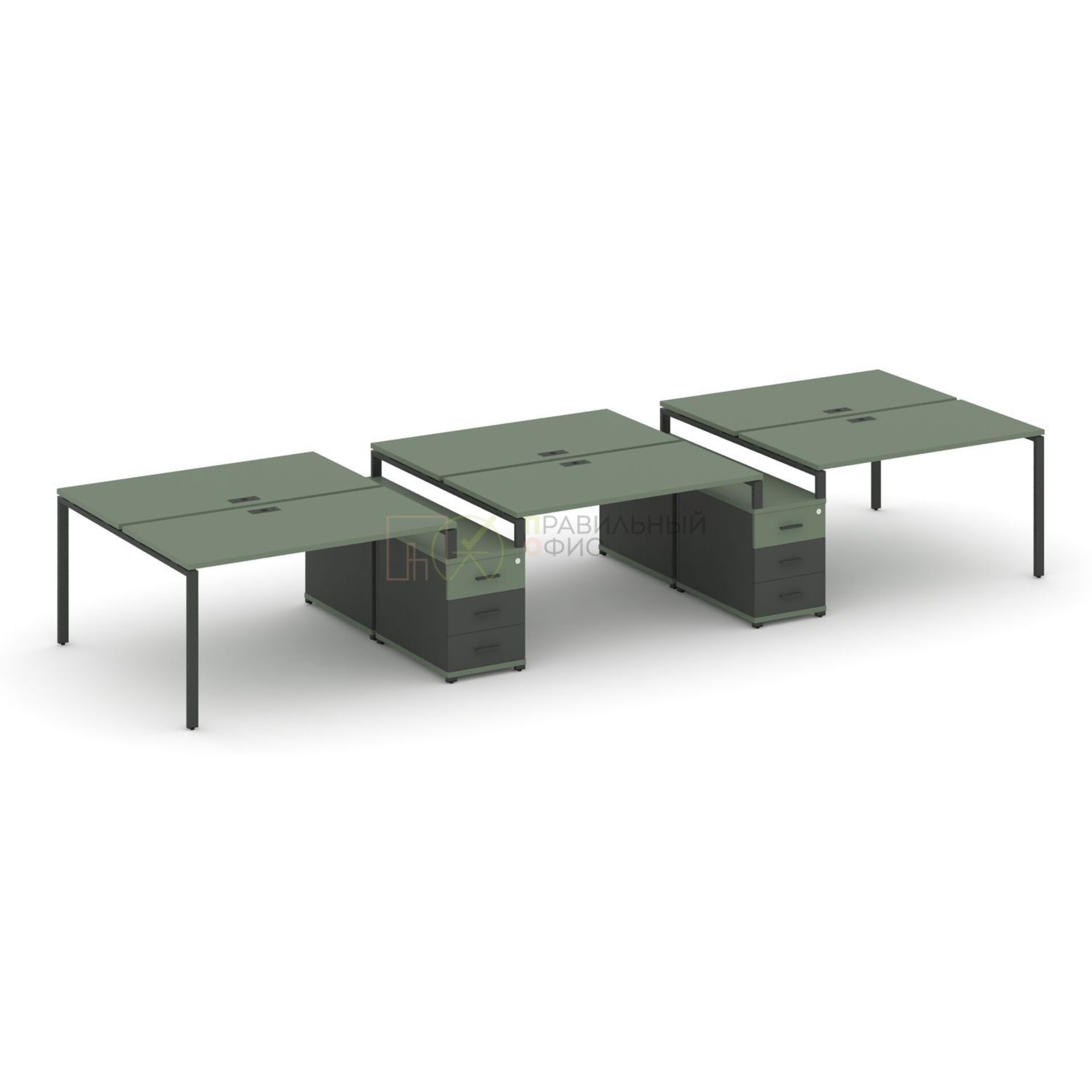 Рабочая станция на 6 мест с двумя двухсторонними опорными тумбами CN.DRS-335 A/B/W