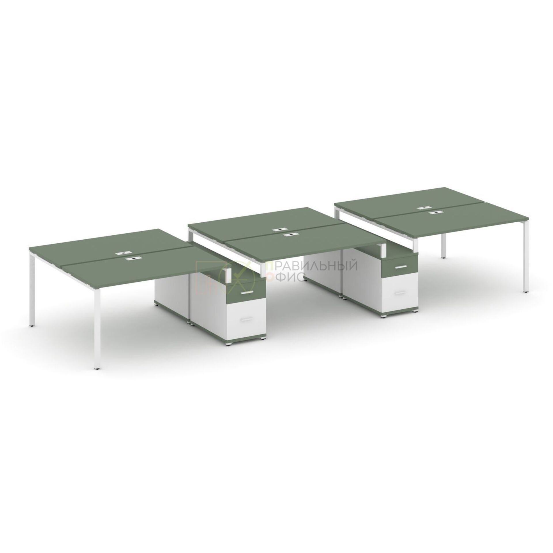 Рабочая станция на 6 мест с двумя двухсторонними опорными тумбами CN.DRS-339 A/B/W