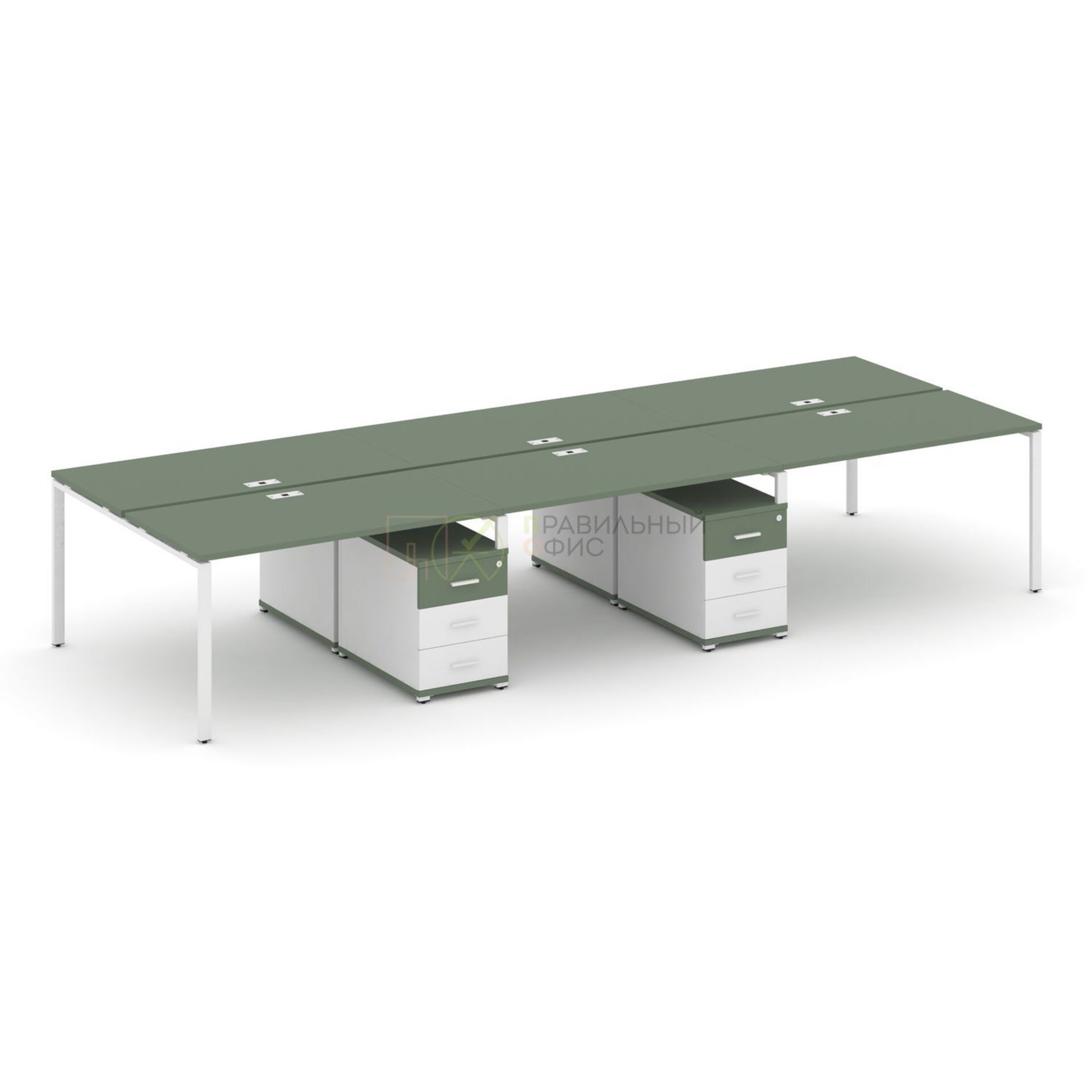Рабочая станция на 6 мест с двумя двухсторонними опорными тумбами CN.DRS-343 A/B/W