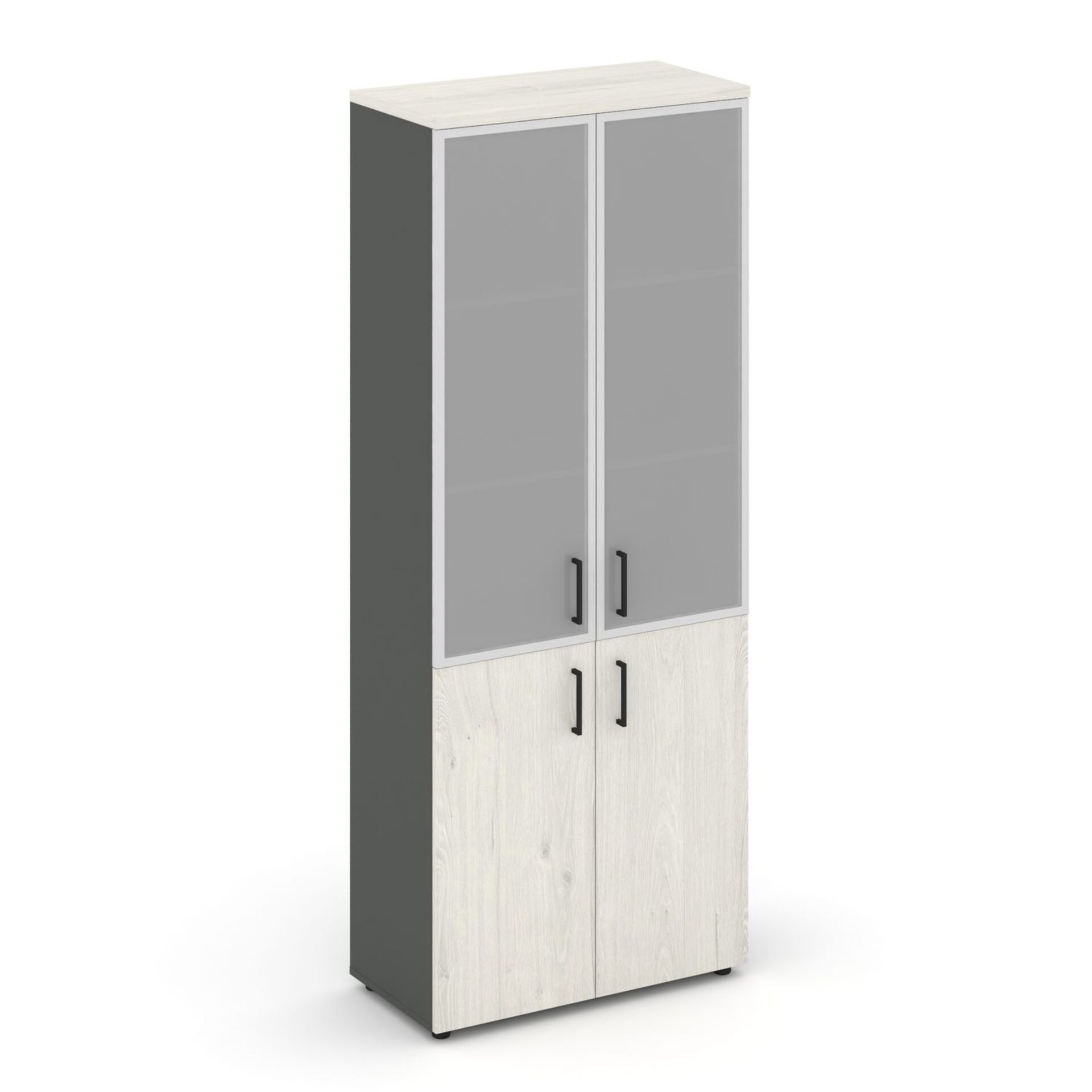 Шкаф высокий широкий (2 низких фасада ЛДСП + 2 средних фасада стекло сатин в раме) SN.STS-103