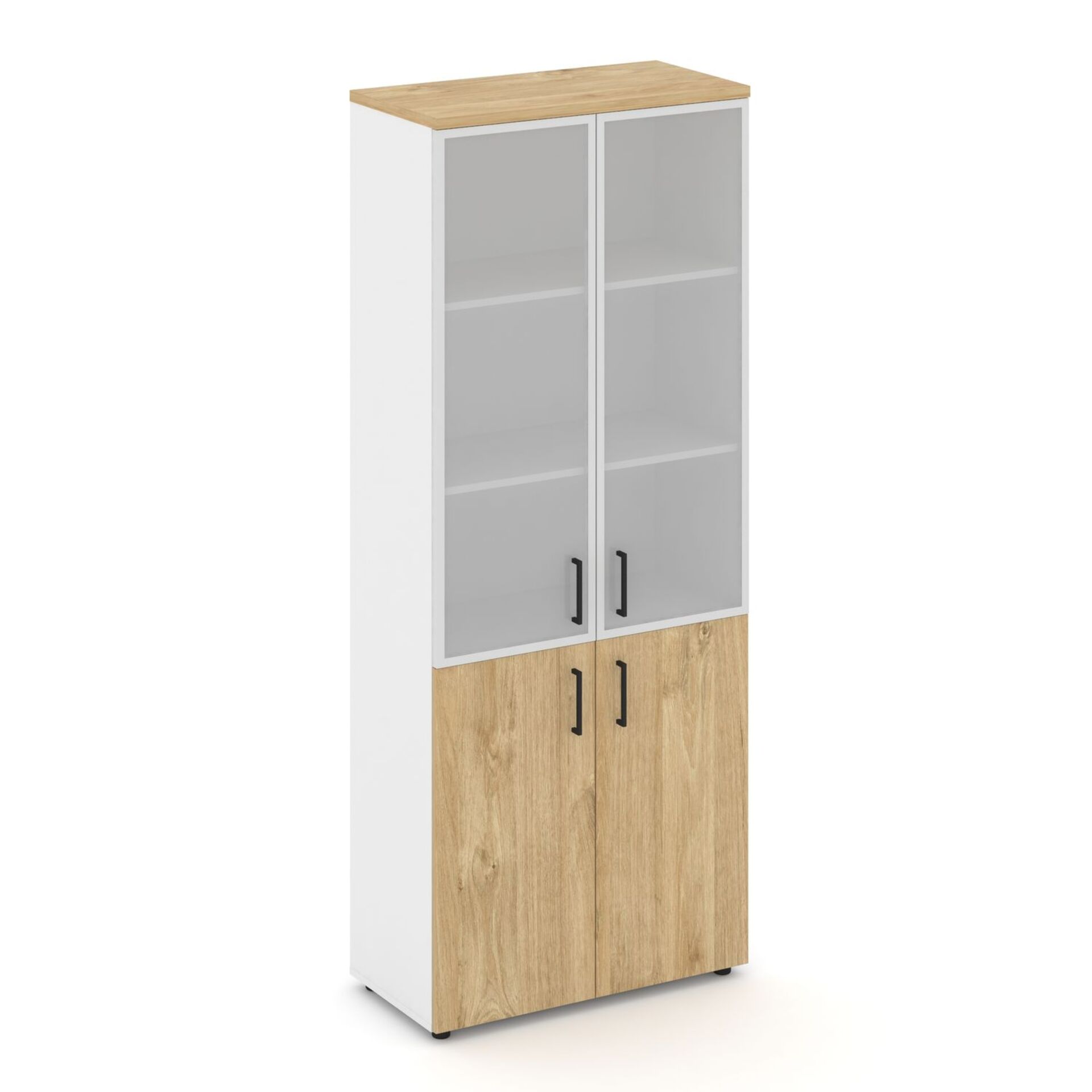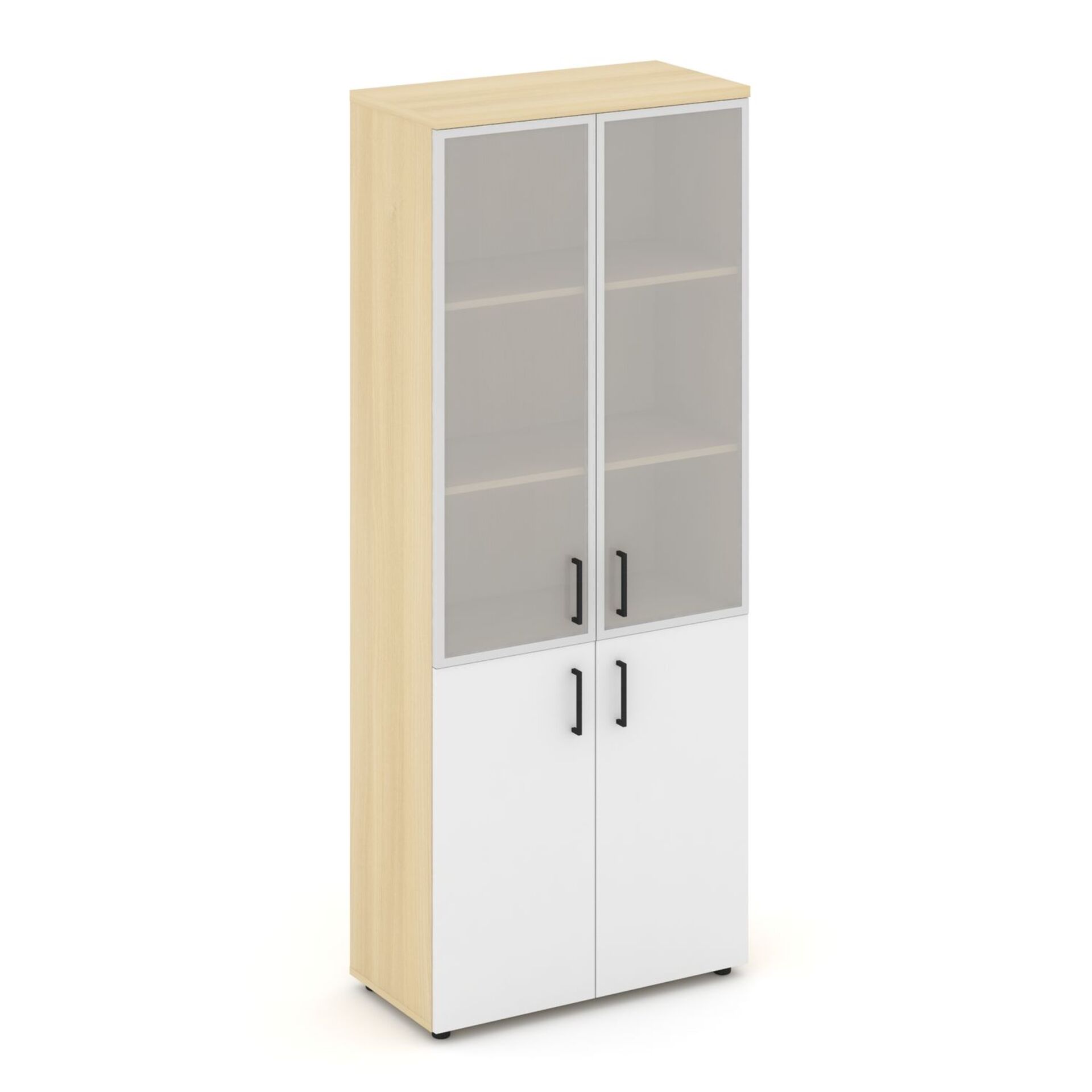 Шкаф высокий широкий (2 низких фасада ЛДСП + 2 средних фасада стекло сатин в раме) SN.STS.E-103