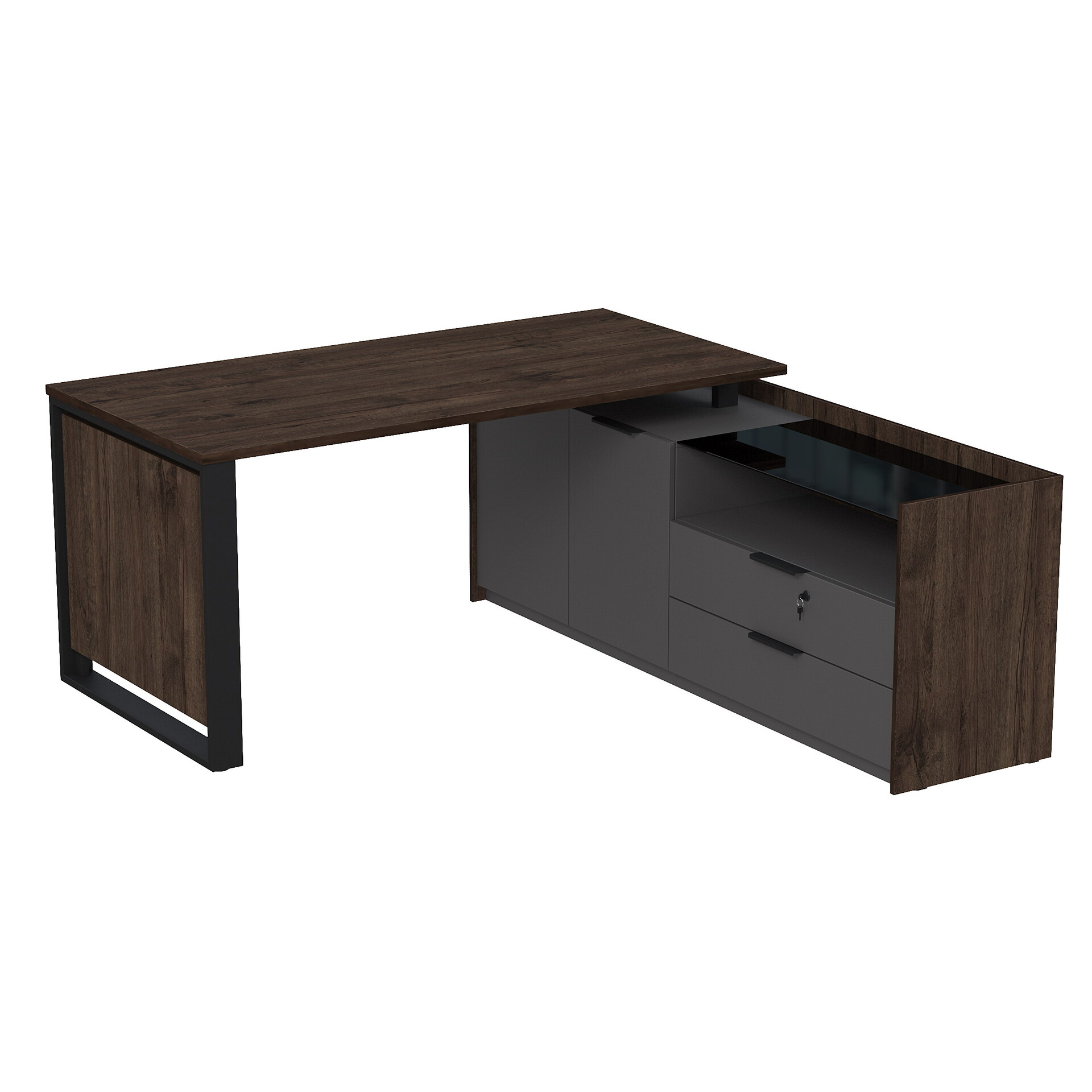 Стол рабочий на опорной двусоставной тумбе, с ящиками (метабокс), с замком 15СОД.1608