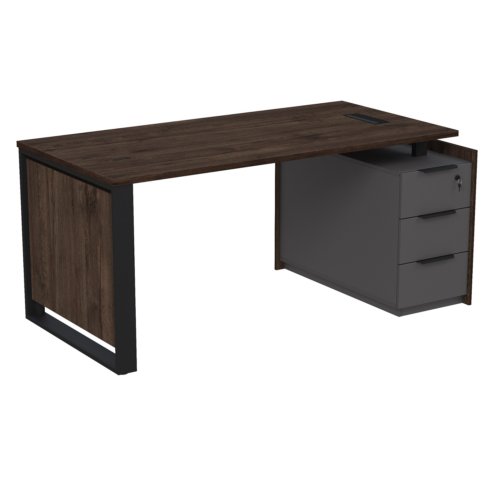 Стол рабочий с люч, на опорной угловой тумбе, с ящиками, с замком 15СОЛУ-ШД.1608