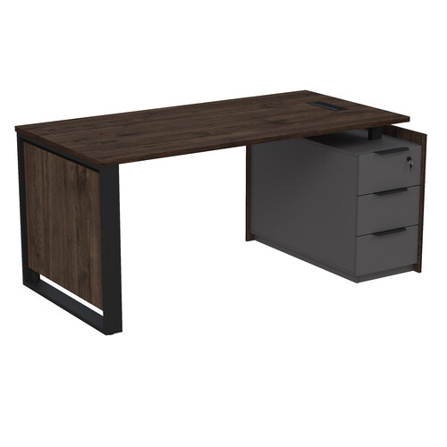 Стол рабочий с люч, на опорной угловой тумбе, с ящиками (метабокс), с замком 15СОЛУ.1608