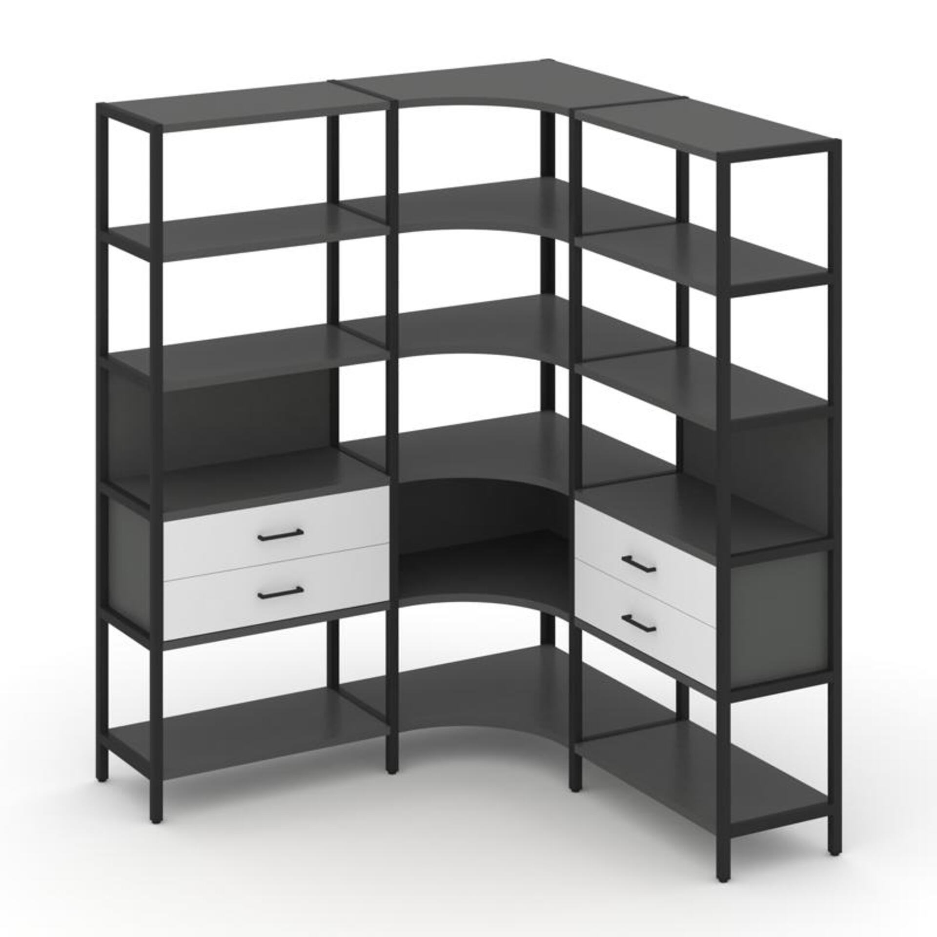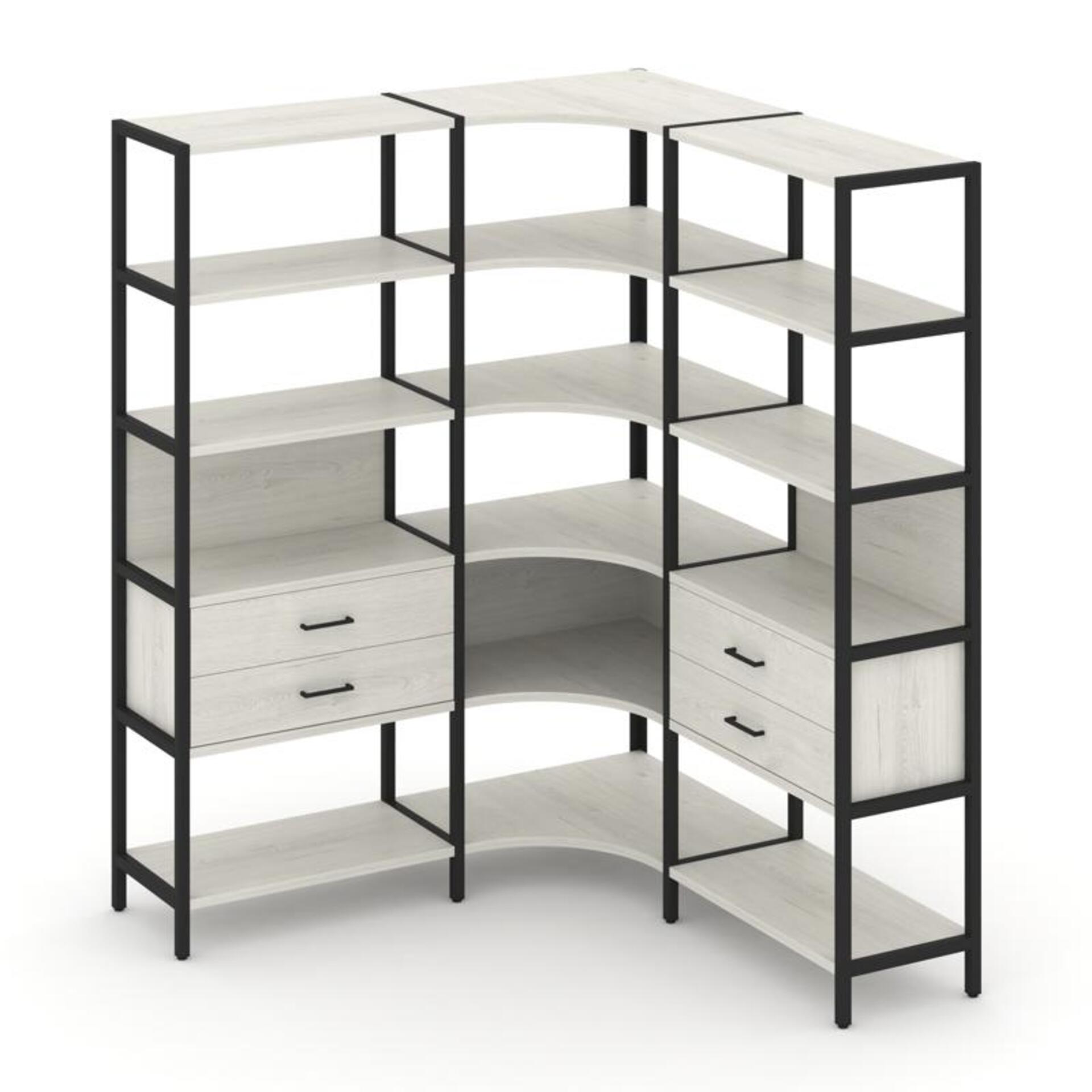 Трехсекционный угловой стеллаж пятиярусный с ящиками SN.STMU-531